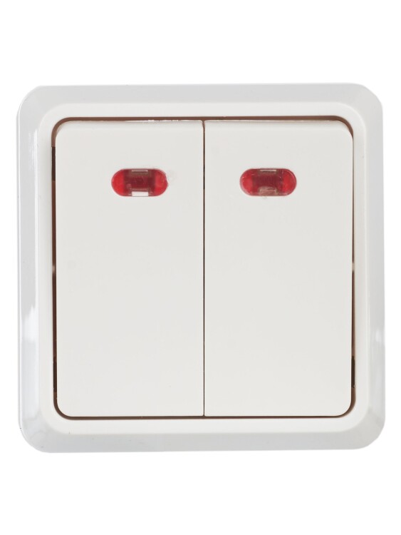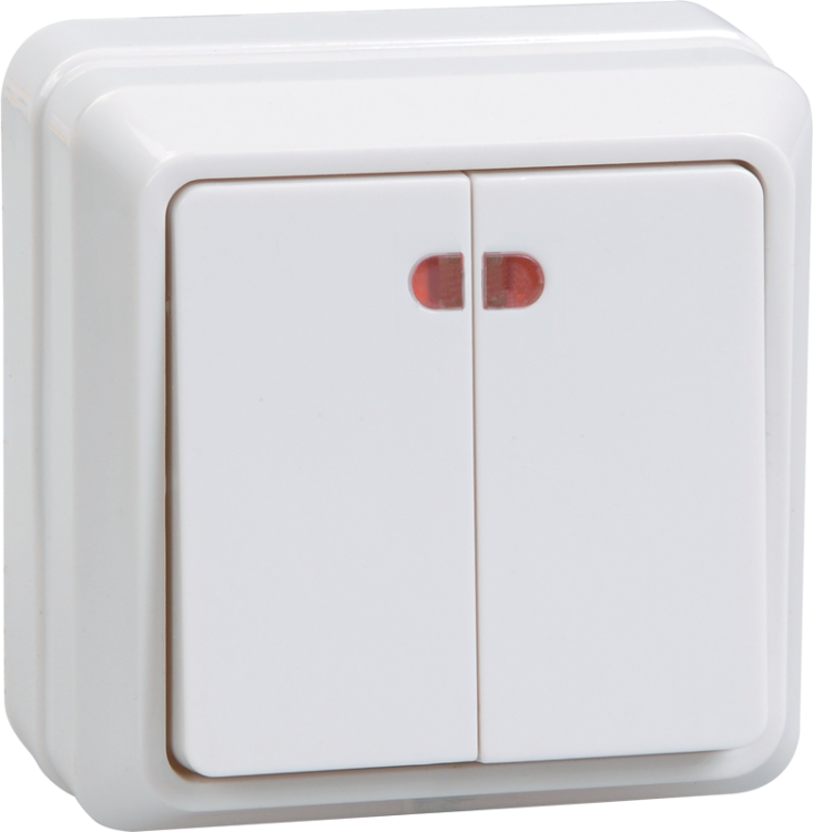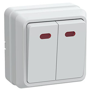 Выключатель двухклавишный ВС20-2-1-ОБ "Октава" IEK (10 А, IP20) открытой установки, с подсветкой, белый