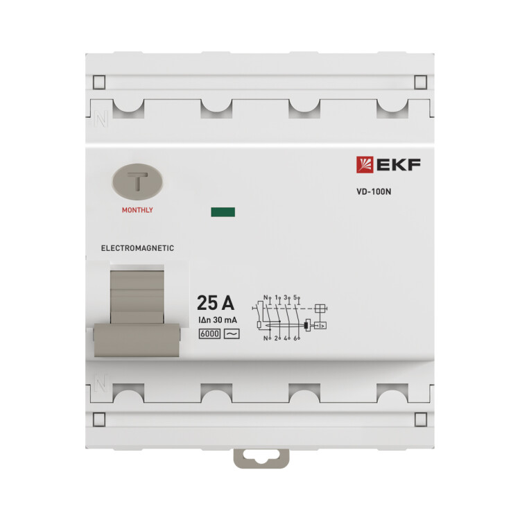 Выключатель дифференциальный (УЗО) 4Р 25А 30мА AC 6кА ВД-100N EKF PROxima