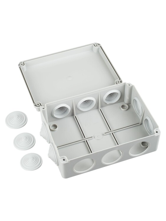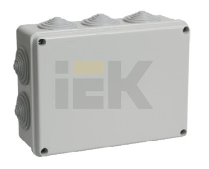 Коробка распределительная КМ41243 IEK (IP44, 10 гермовводов) открытой установки, прямоугольник, серый, 190 х 140 х 70 мм