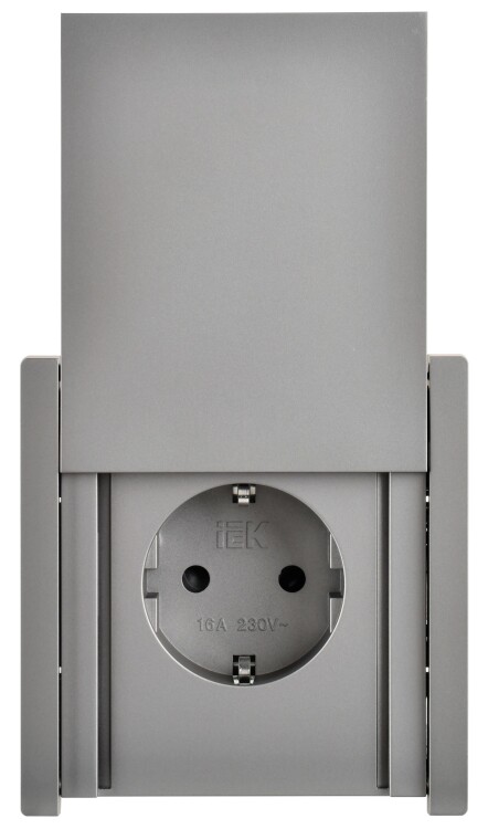 Розетка одноместная IEK FP521 Forte&Piano (16 А, IP44) скрытой установки, с заземлением и шторками, с крышкой, сталь