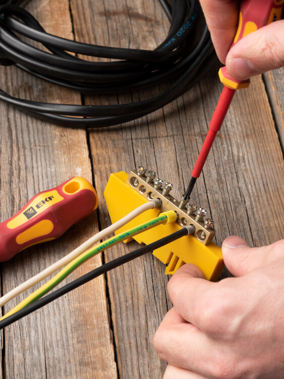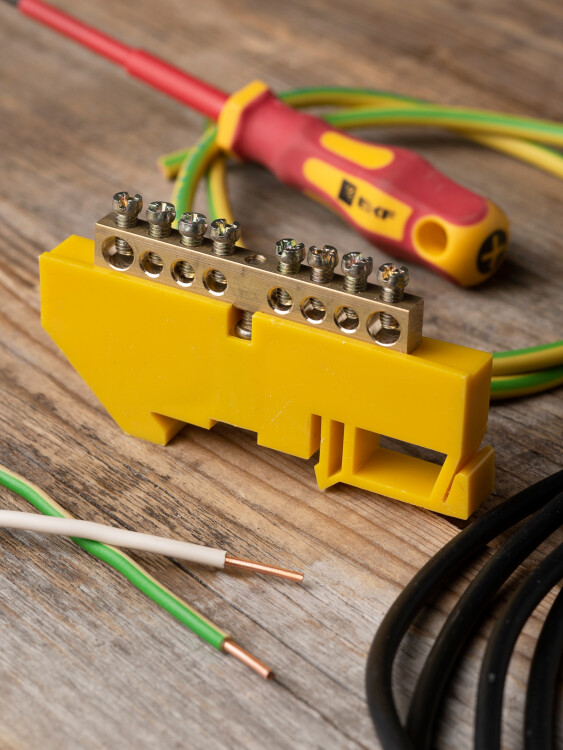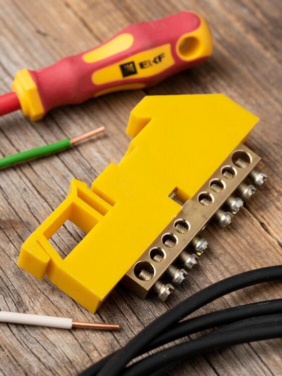 Шина нулевая 6*9 8групп DIN-изолятор желтый на DIN-рейку EKF