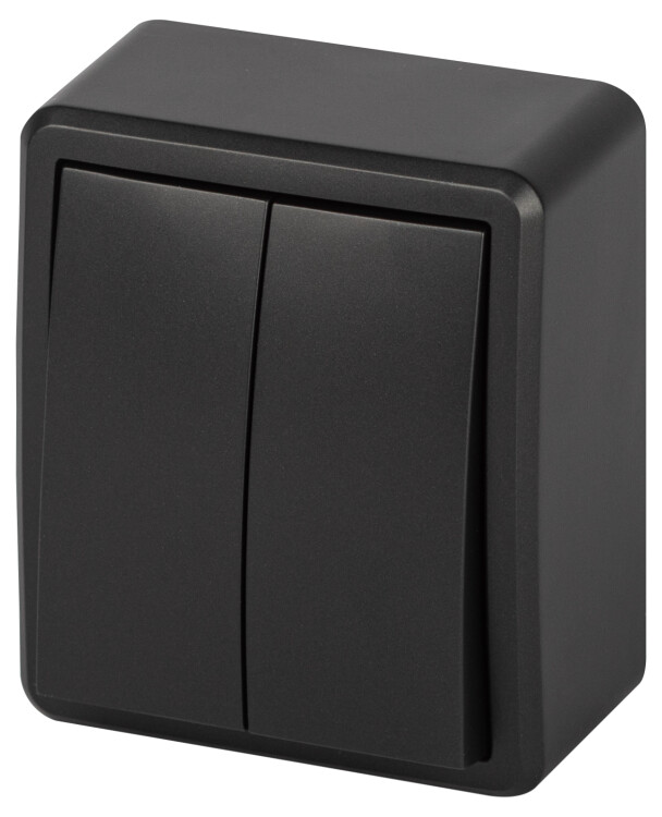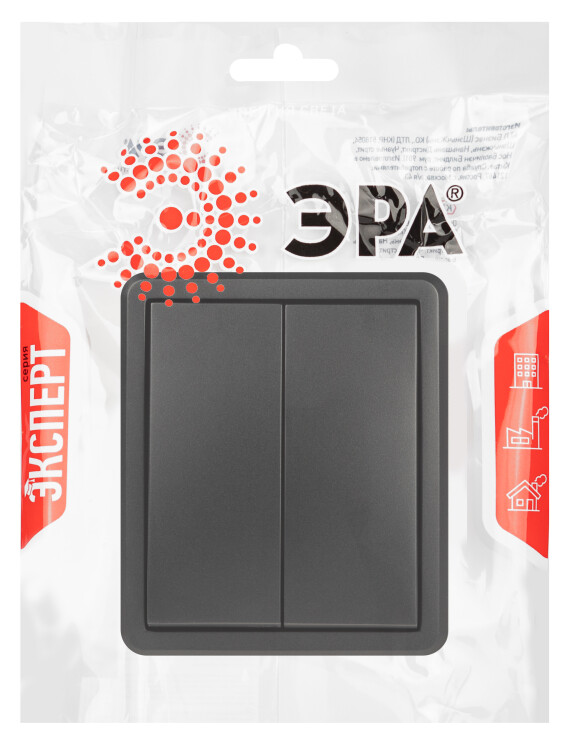 Выключатель 2-клавишный серии Эра Эксперт открытой установки цвет антрацит 11-1204-05. Номинальные характеристики 10А 250В. Выключатель выполнен из качественного поликарбоната, оснащён уникальными винтовыми клеммами ЭКСПЕРТ для максимально качественного зажима кабеля в механизме.