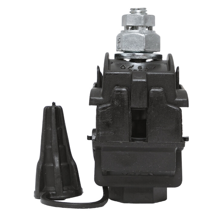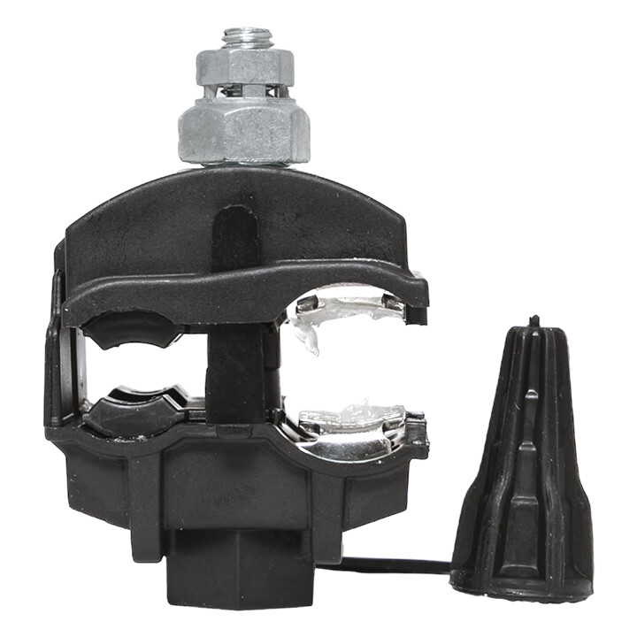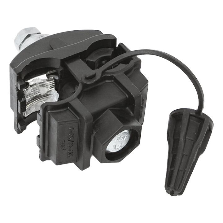 Зажим типа n-640 предназначен для создания герметичного электрического соединения изолированного провода СИП и неизолированного магистрального провода ВЛ. Контакт с изолированным проводом обеспечивается прокалыванием изоляции, с неизолированным проводом – прижимной пластиной. При достижении момента, необходимого для создания надежного электрического контакта проводов, происходит срыв головки болта. Контактные пластины изготовлены из луженного алюминиевого сплава. На прокалывающие элементы нанесена контактная смазка. Болт изолирован от контактных деталей зажима. Зажим устойчив к ультрафиолетовому и солнечному излучению, высоким и низким температурам, коррозии и агрессивным атмосферным воздействиям.