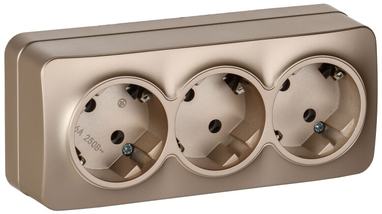 Розетка трехместная IEK РС23-3-ХШм Glory (16 А, IP20) открытой установки, с заземлением, шампань матовый