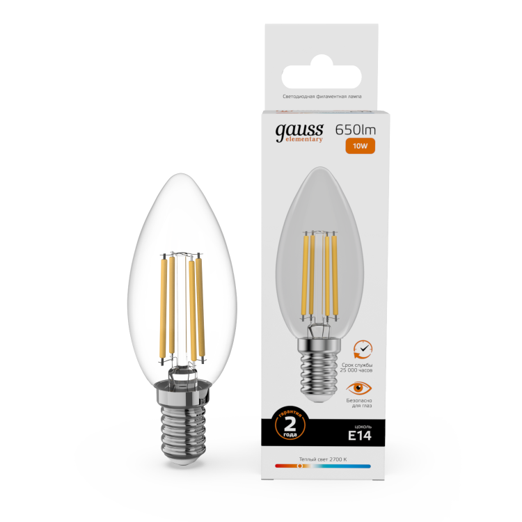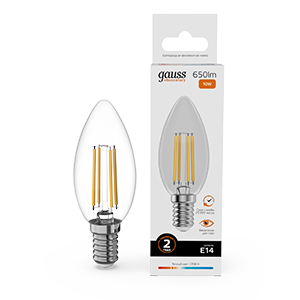 Лампа свеча свд E14 10Вт 2700К 650лм С35 прозрачная филамент Gauss