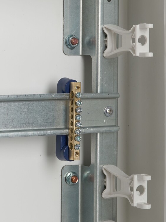 Шина нулевая 6*9 8групп 2 угловых изолятора синий винтовой IEK