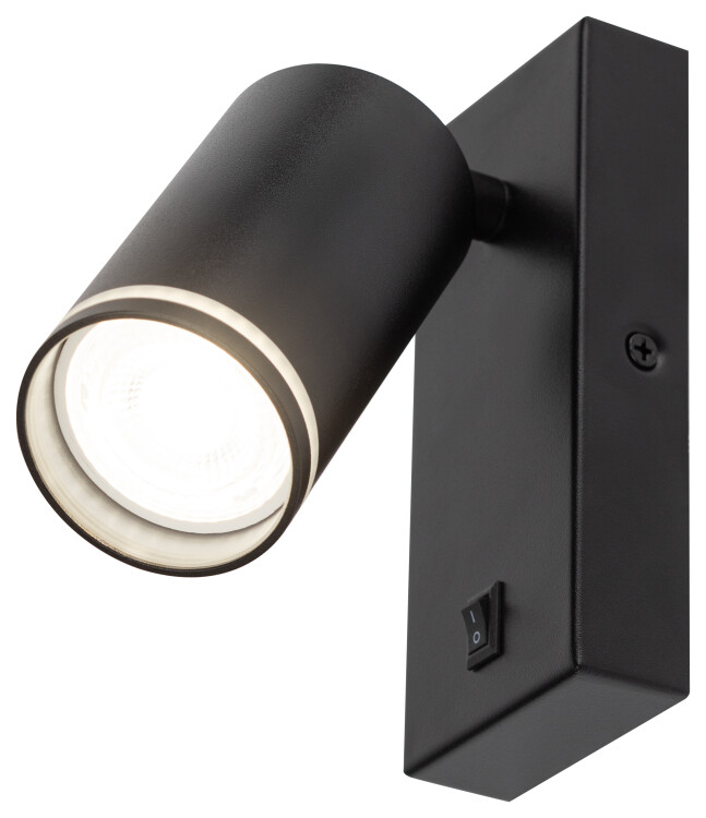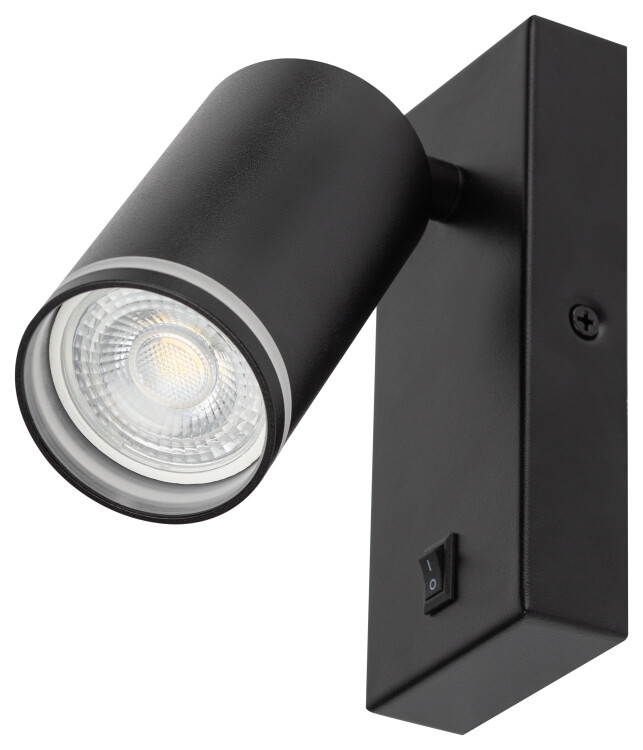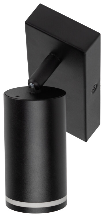 Светильник декоративный настенный WL19 BK прек расная альтернатива трековым светильникам и не требует дополнительных дорогих элементов монтажа. Поворотный механизм позволяет создавать дополнительные световые акценты в помещении. Цоколь для источника света GU10, напряжение питания ~230В 50/60Гц, материал алюминий, железо, цвет светильника черный, размер D55*H100мм, максимальная мощность лампы 12Вт, степень защиты IP20