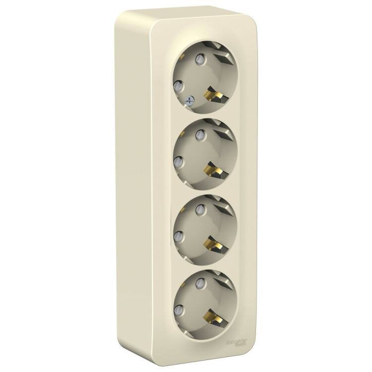Бланка молочный розетка открытая 4-мест заземление шторки IP20