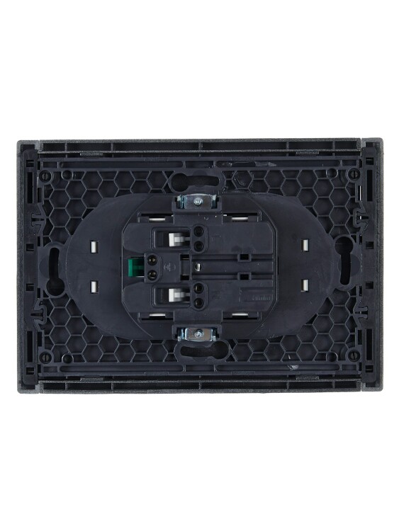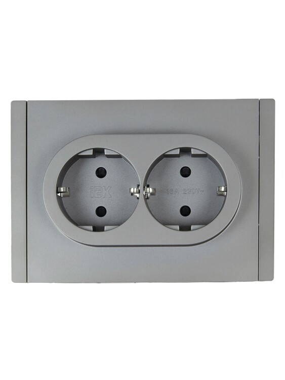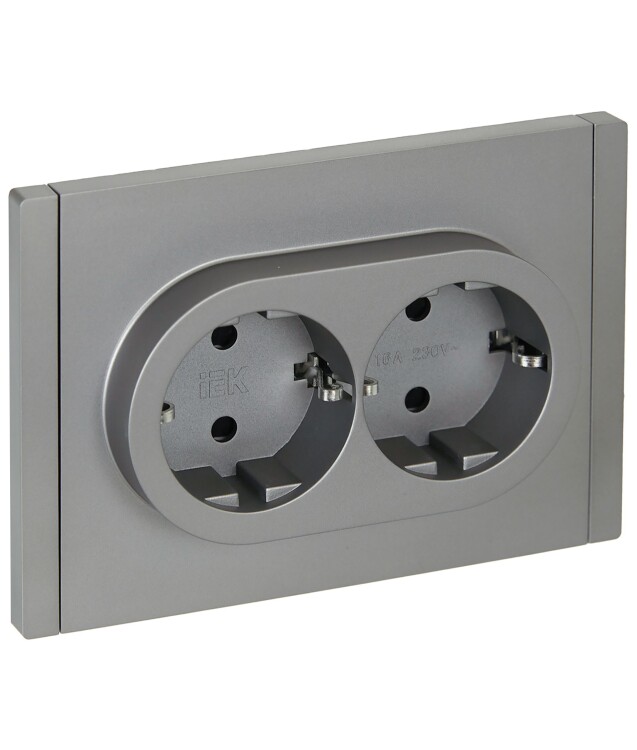 Розетка двухместная IEK FP523 Forte&Piano (16 А, IP20, безвинтовые зажимы) скрытой установки, с заземлением и защитными шторками, сталь