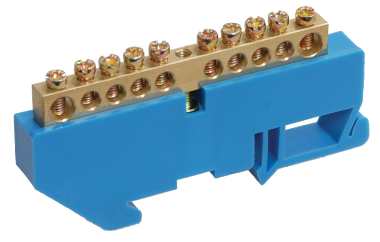 Шина нулевая 6*9 8групп DIN-изолятор синий на DIN-рейку IEK