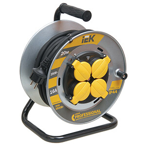 Удлинитель четырехместный УК20 IEK Professional WKP16-16-04-20-44 (КГ 3 х 1,5 кв.мм, IP44) с заземлением, на металлической катушке, 20 м