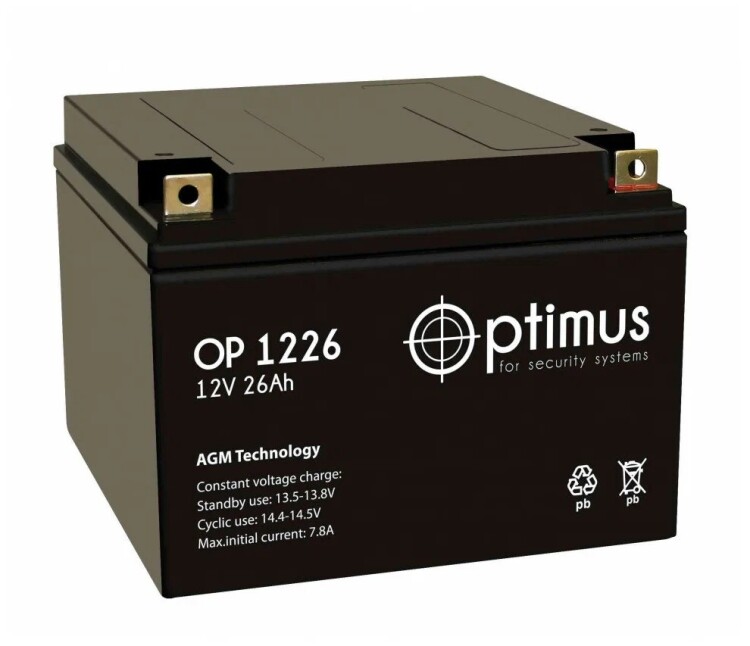 Аккумулятор 26000mAh 12В штучно Optimus OP 1226