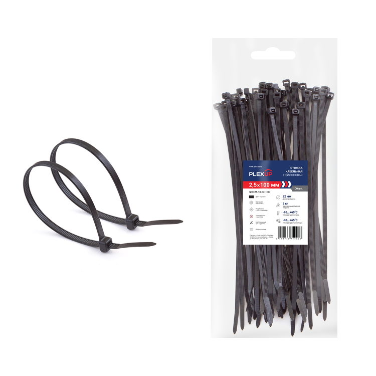 Хомут 100*2,5мм нейлон черный PlexUp 100шт