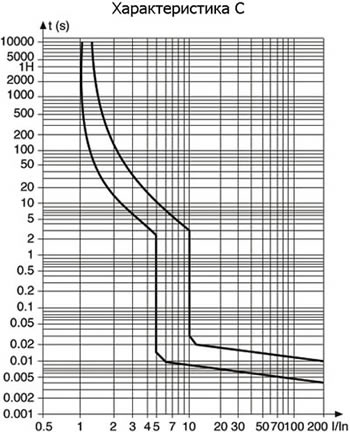 | Кривая отключения (диапазон токов мгновенного расцепления) | C |