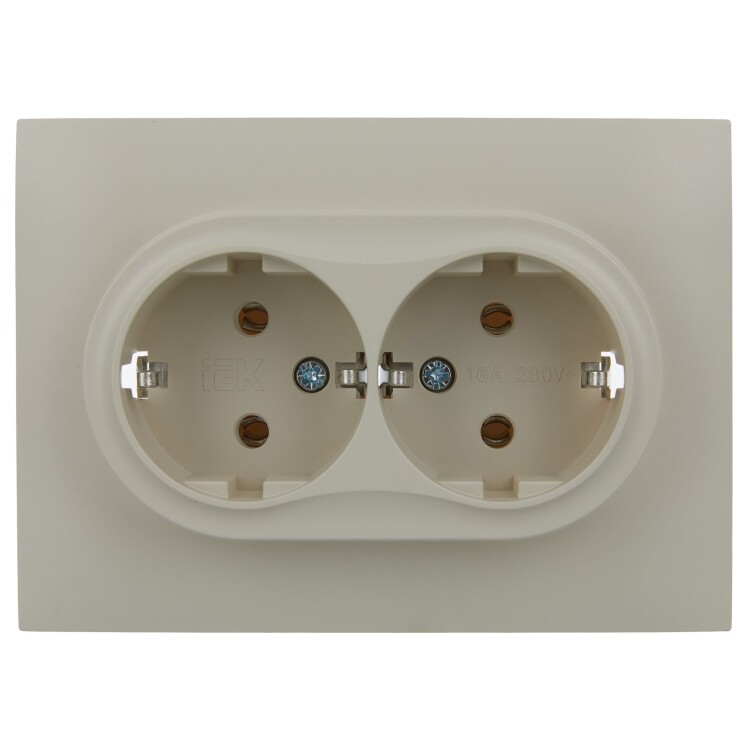 Розетка двухместная IEK SK-R08B Skandy (16 А, IP20) скрытой установки, с заземлением, в сборе, бежевый