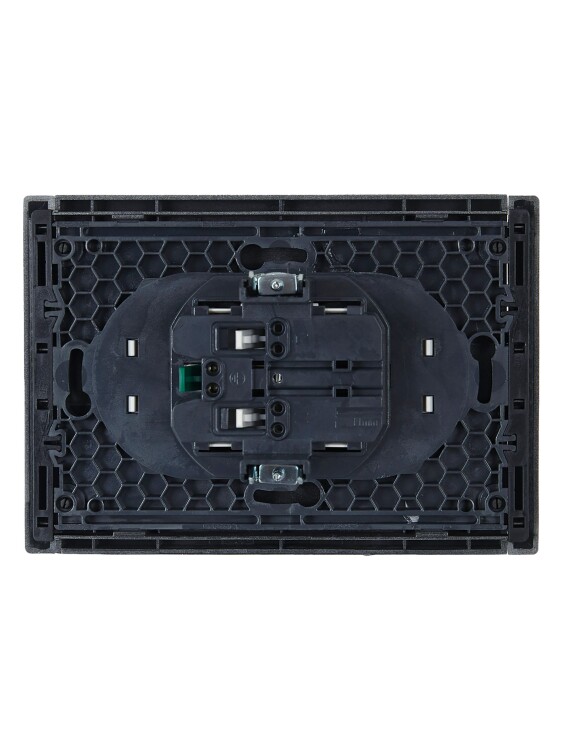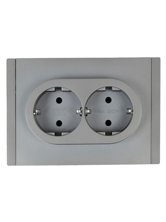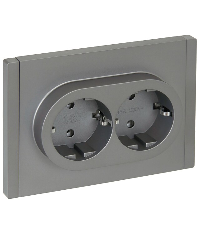 Розетка двухместная IEK FP524 Forte&Piano (16 А, IP20, безвинтовые зажимы) скрытой установки, с заземлением, сталь