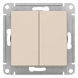 Переключатель двухклавишный Schneider Electric ATN000265 AtlasDesign (10 АХ) скрытой установки, бежевый
