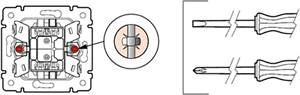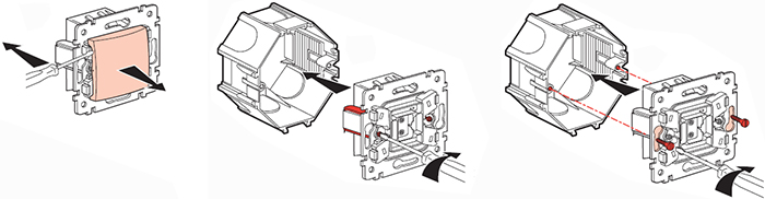 - Механизмы всех выключателей и кнопок оснащены креплением на винтах и на захватах.