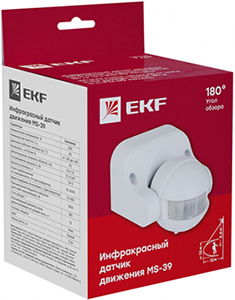 Инфракрасный датчик движения MS-39 EKF предназначен для автоматического управления освещением, охранной сигнализацией, электроприборами в зависимости от движения людей и других объектов в зоне действия сенсора, а также в завивимости от уровня освещенности.