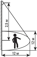 | Максимальный диаметр зоны детектирования на уровне пола, м | 12 |