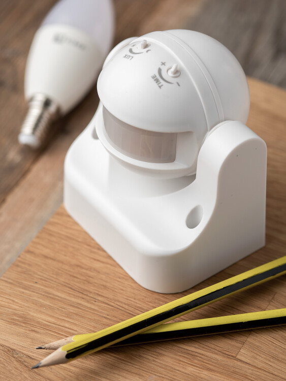 Датчик движения настенный EKF MS-39 PROxima (1200 Вт, дальность действия 12 м, угол обзора 180°, IP44), белый