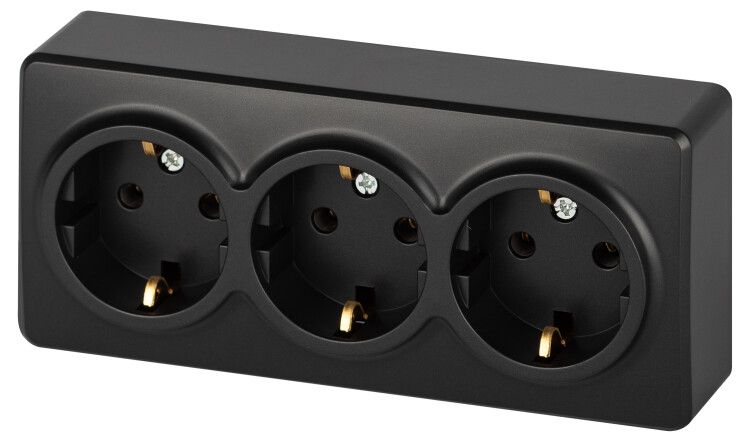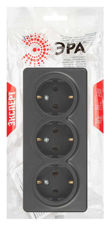 Розетка тройная с заземлением серии Эра Эксперт открытой установки цвет антрацит 11-2208-05. Номинальные характеристик и 16А 250В. Устройство выполнено из качественного поликарбоната, оснащёно уникальными винтовыми клеммами ЭКСПЕРТ для максимально качественного зажима кабеля в механизме.