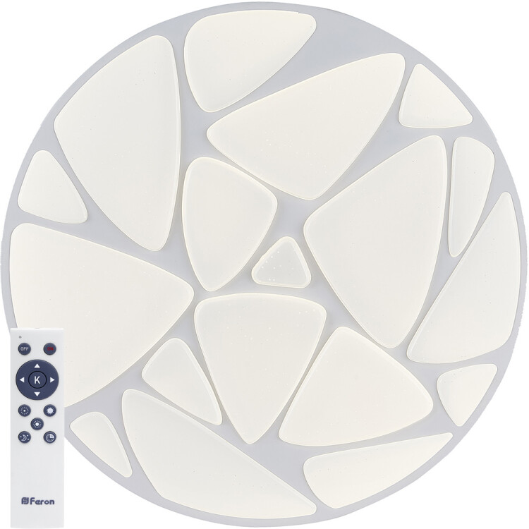 Светильник накладной светодиодный, потолочный управляемый (ДПО) FERON AL4061, 72W, 3000К-6000K (теплый-белый-дневной), 230V, 5760Lm, IP20, угол рассеивания 120°, цвет белый, корпус штампованная сталь, рассеиватель матовый пластик, серия "звездное небо" и металл, 500*500*70