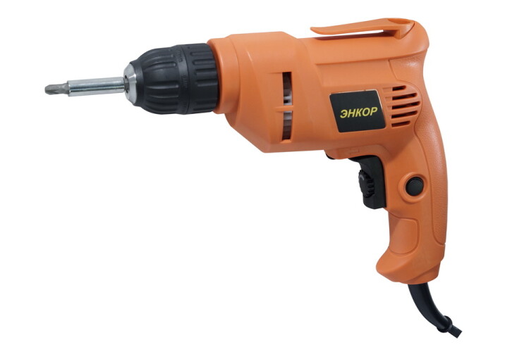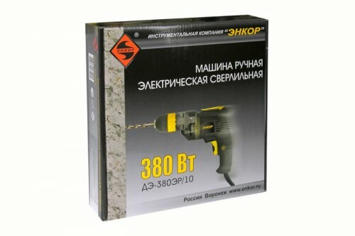 Модифицированная версия популярной дрели ДЭ-400ЭР/10. Электронная регулировка частоты вращения шпинделя. Регулировка частоты вращения нажатием на выключатель. Реверс. Выключатель с возможностью фиксации во включенном состоянии. Быстрозажимной патрон. Малый вес, компактный размер. Клипса для фиксации на поясе. Обрезиненный сетевой шнур длиной 2 метра. Номинальное напряжение питания: 220/50 В/Гц, Номинальная потребляемая мощность: 380 Вт, Частота вращения шпинделя на холостом ходу: 0-3000 об/мин, Диаметр зажимаемого в патроне инструмента: 0,8-10 мм, Максимальный диаметр сверления в древесине: 20 мм, Максимальный диаметр сверления в стали: 10 мм, Масса нетто: 1,2 кг, Размер упаковки (ДхШхВ): 240x70x240 мм