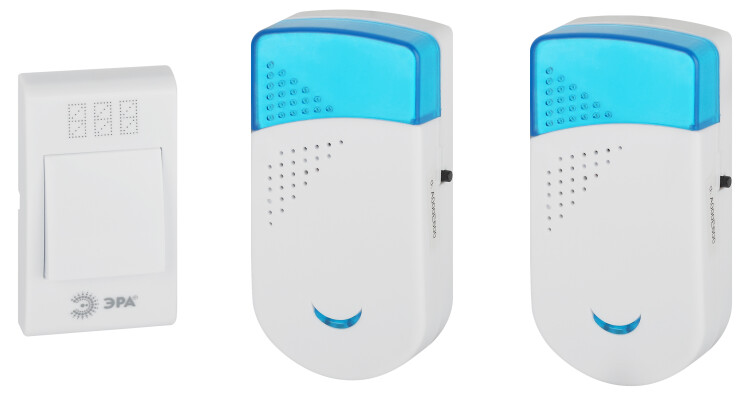 TWIN-R ЭРА - дверной беспроводной электрон ный звонок с двумя динамиками, которые можно установить в разных комнатах. Идеальное решение для больших квартир, частных домов. Радиус действия 100 метров. 32 мелодии вы можете чередовать в зависимости от настроения. Звук такого звонка никогда не надоест. Работает от батареек: 1 шт А23 для кнопки (входят в комплект), по 2 шт ААА мизинчиковые для каждого динамика (в комплект не входят). Аккуратный лаконичный дизайн. Над кнопкой предусмотрено пространство для указания номера квартиры.