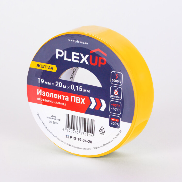 Изолента ПВХ 19 мм х 20 м PlexUp STP15-19-06-20, желтый