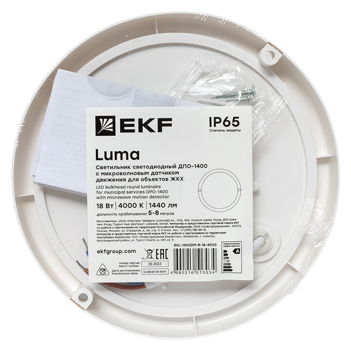 Светильник ДПП 18Вт 4000К 1440лм круг белый IP65 ДПО-1400 Luma EKF