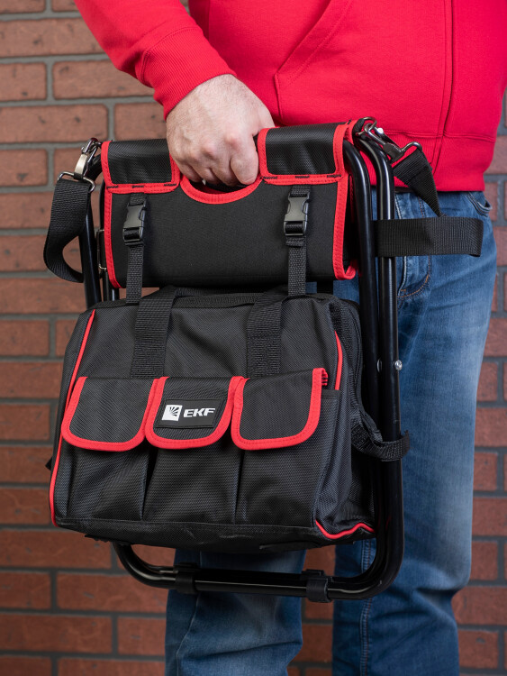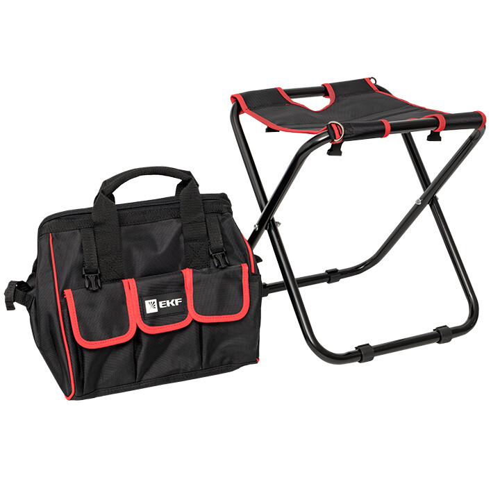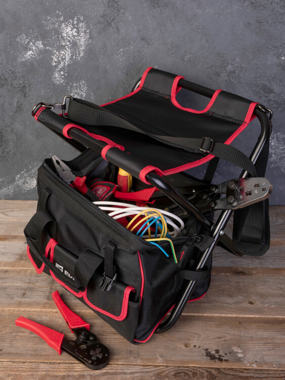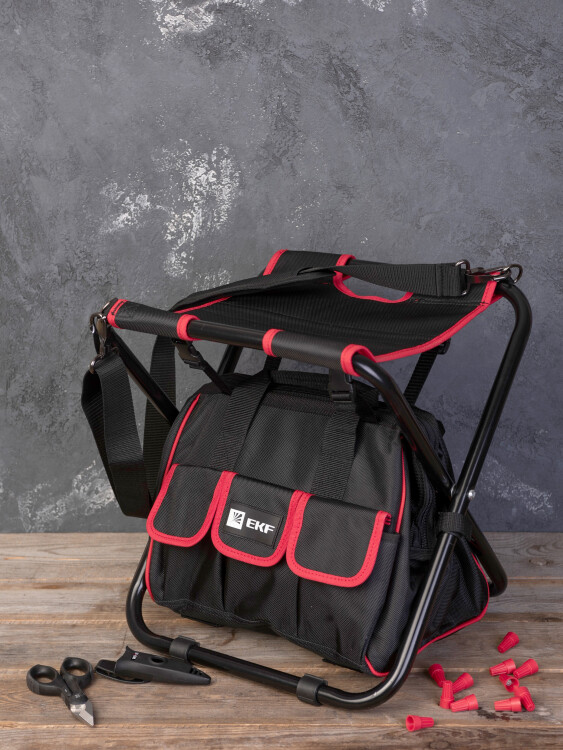 Сумка-стул С-06 используется для хранения и переноски инструмента, а также комфортного монтажа электроустановочных изделий.
