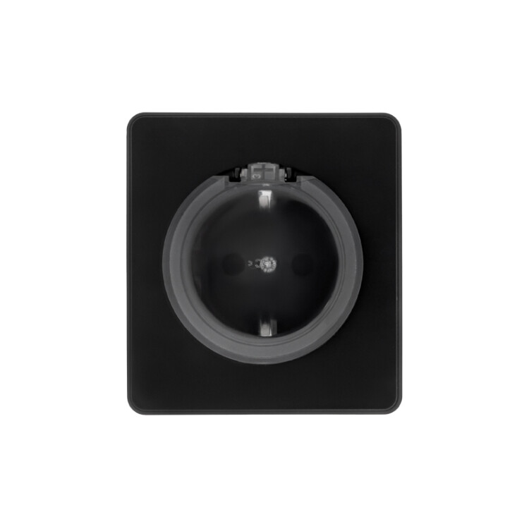 Розетка одноместная Kranz KR-78-0702-3 Miele Round (16 А, IP20) с заземлением и защитными шторками, с крышкой, скрытой установки, оникс