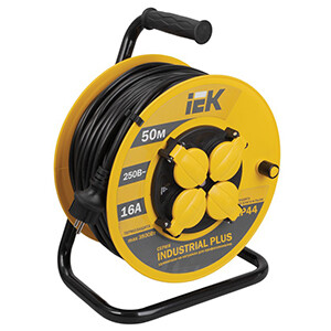 Удлинитель четырехместный УК50 IEK Industrial plus WKP15-16-04-50-44 (ПВС 3 х 1,5 кв.мм, IP44) с заземлением, на катушке, 50 м