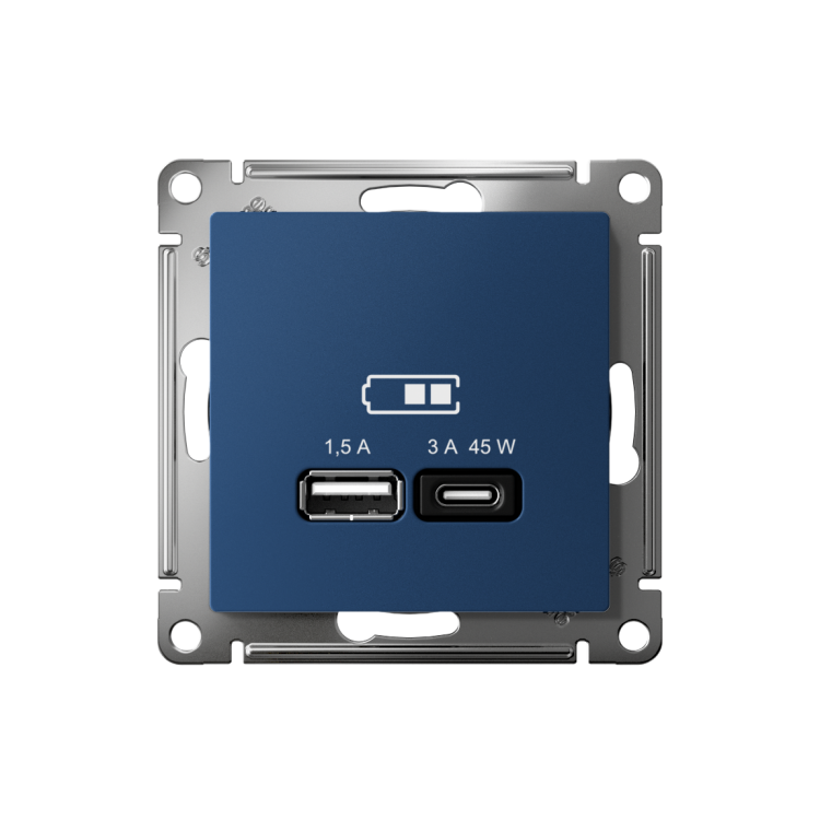 Розетка USB тип А (1,5 А) + тип C (3 А, 45 Вт) Systeme Electric ATN001129 AtlasDesign (высокоскор.заряд QC, PD), аквамарин