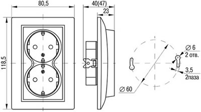 - Конструкция шасси позволяет крепить изделие как на винты, так и на распорные лапки в различные типы установочных коробок.