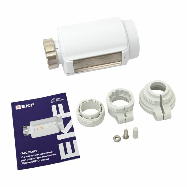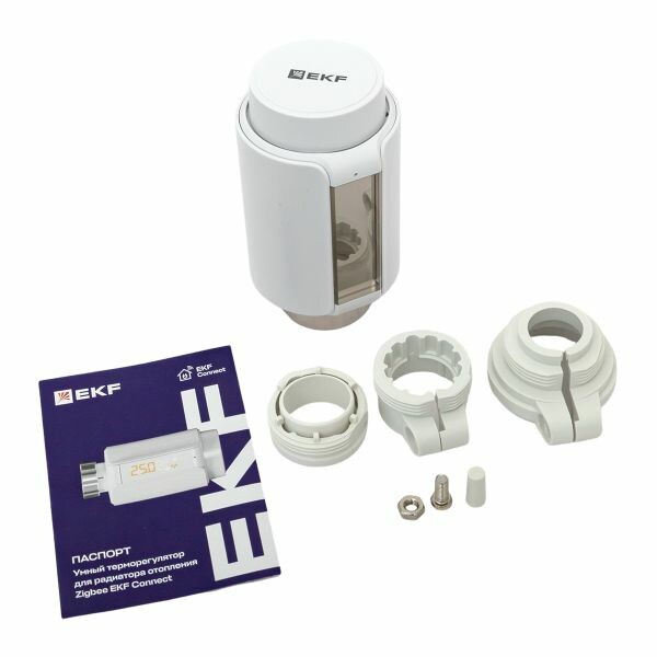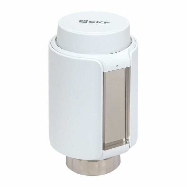 Умный терморегулятор для радиатора отопления Zigbee EKF Connect позволяет выставлять температуру как на самом устройстве, так и из приложения EKF Connect Home или через голосового помощника от Яндекса — Алису. Можно регулировать тепло батарей по расписанию и датчику температуры. У термостата есть встроенный датчик температуры воздуха. Вкручивается вместо обычной термоголовки с резьбой M30*1,5 мм. Умный терморегулятор поддерживает протокол Zigbee, для подключения нужен хаб.