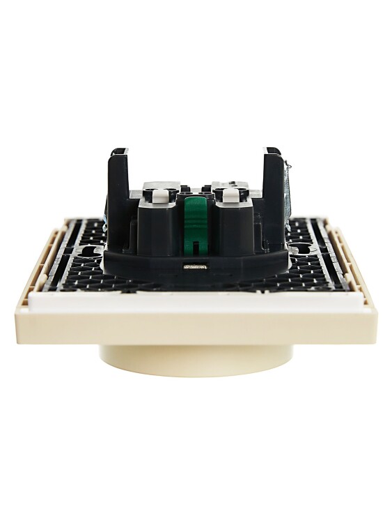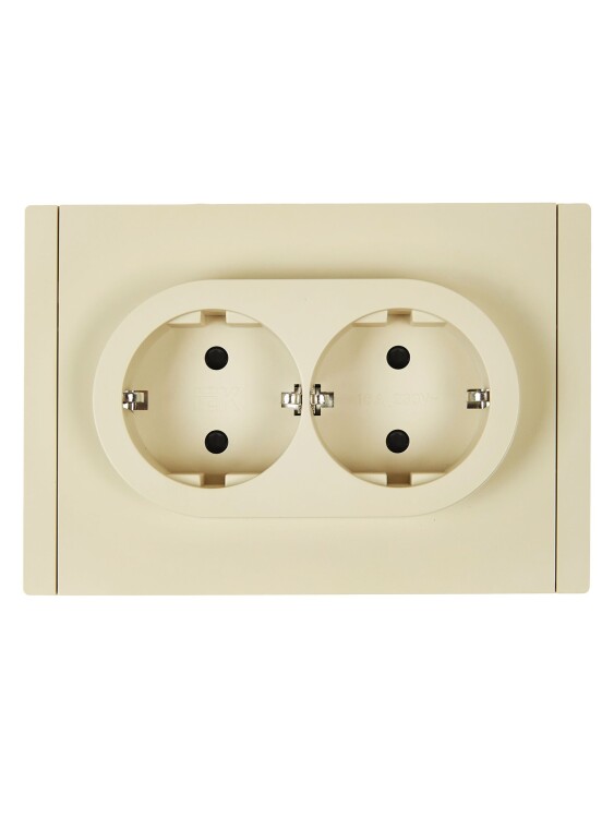 Розетка двухместная IEK FP423 Forte&Piano (16 А, IP20, безвинтовые зажимы) скрытой установки, с заземлением и защитными шторками, ваниль