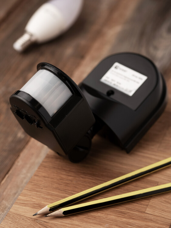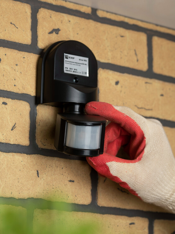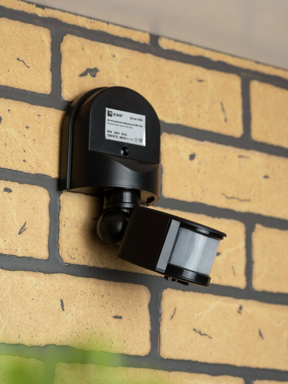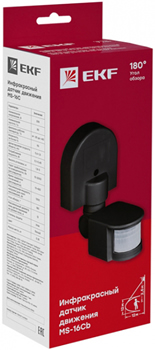 Датчик движения настенный EKF MS-16Сb PROxima (1200 Вт, дальность действия 12 м, угол обзора 180°, IP44), черный