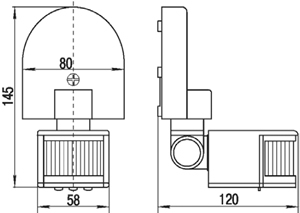Сенсор датчика имеет регулируемый в 2 плоскостях поворотный механизм, что позволяет нацелить его на необходимую зону.