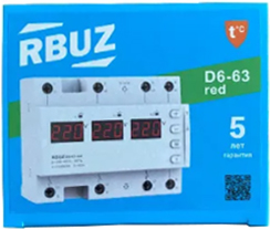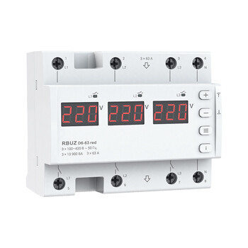 Реле напряжения трехфазное D6-63 Red RBUZ (63 А) прямого включения