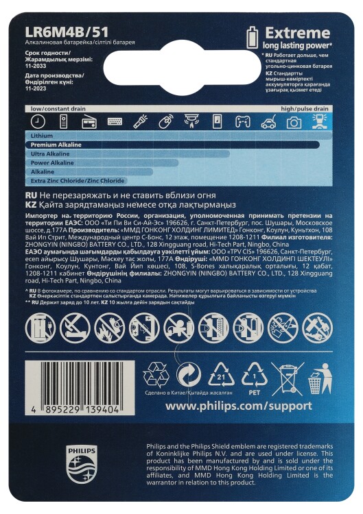 • Щелочные батареи Philips содержат 0 % кадмия, ртути и свинца