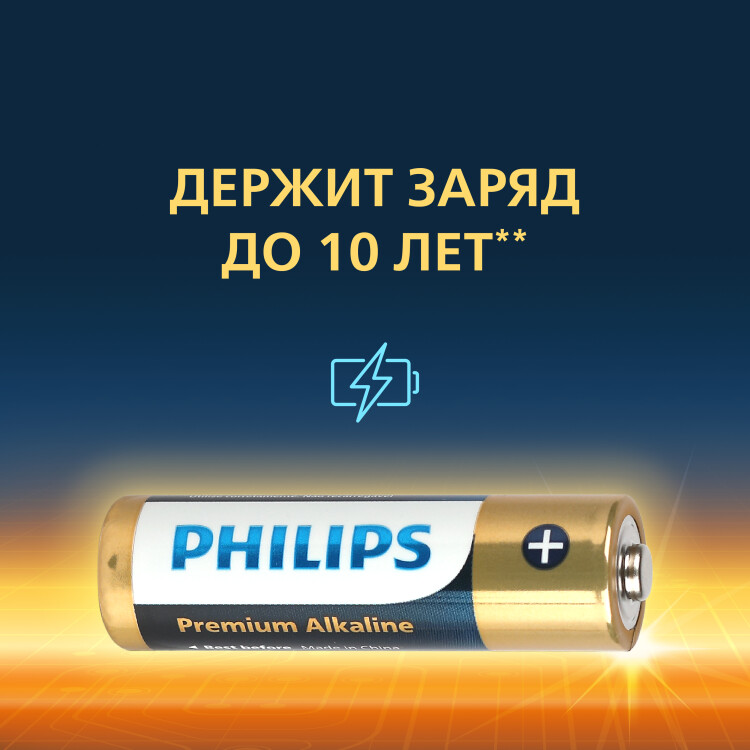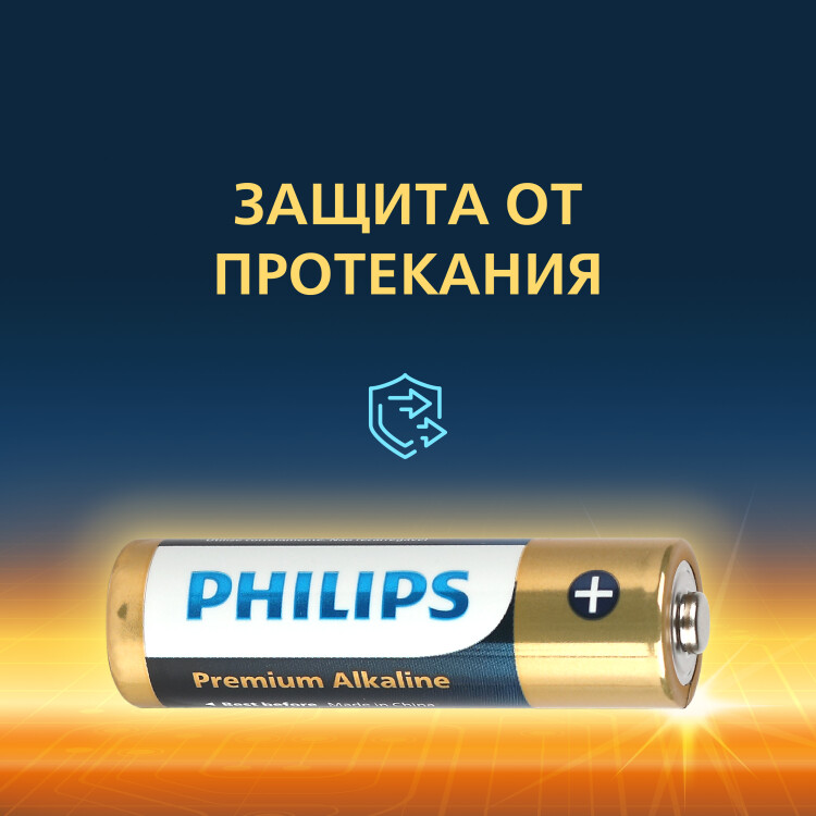 Мощность щелочных батарей Philips Premium типа AA на 166 % превышает отраслевые стандарты.