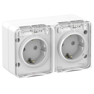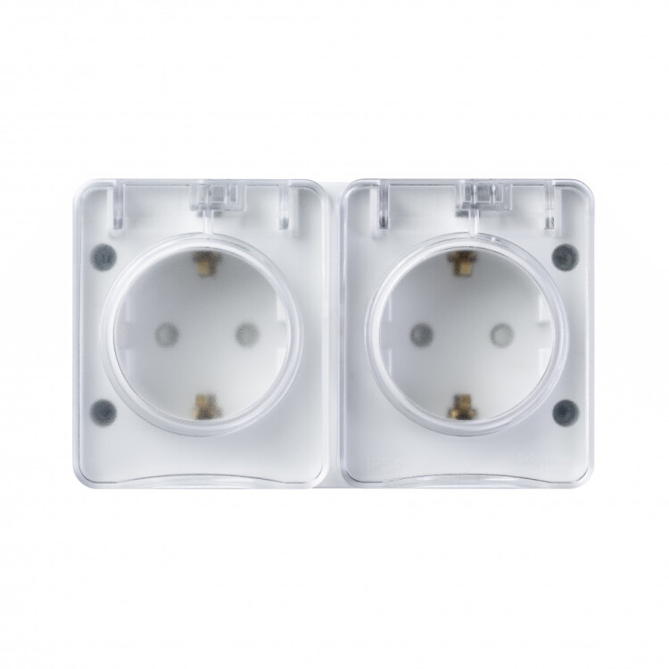Атлас Профи белый розетка открытая 2-мест заземление шторки IP54