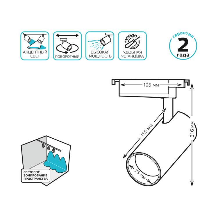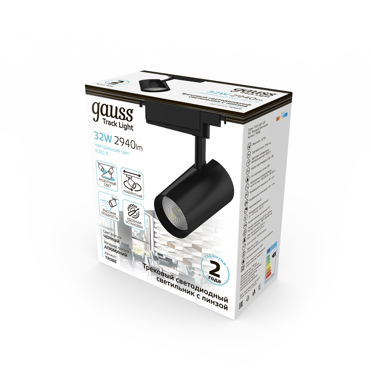 Светильник на трек однофазный свд 32Вт 4000К 2940лм черный Gauss