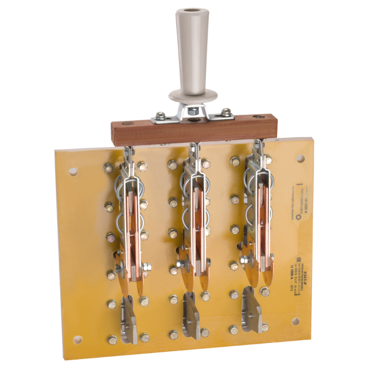 Выключатель-разъединитель 3 полюсный на номинальный ток 630 А, где установлена несъемная рукоятка, а механическая износостойкость составляет 10000 циклов.