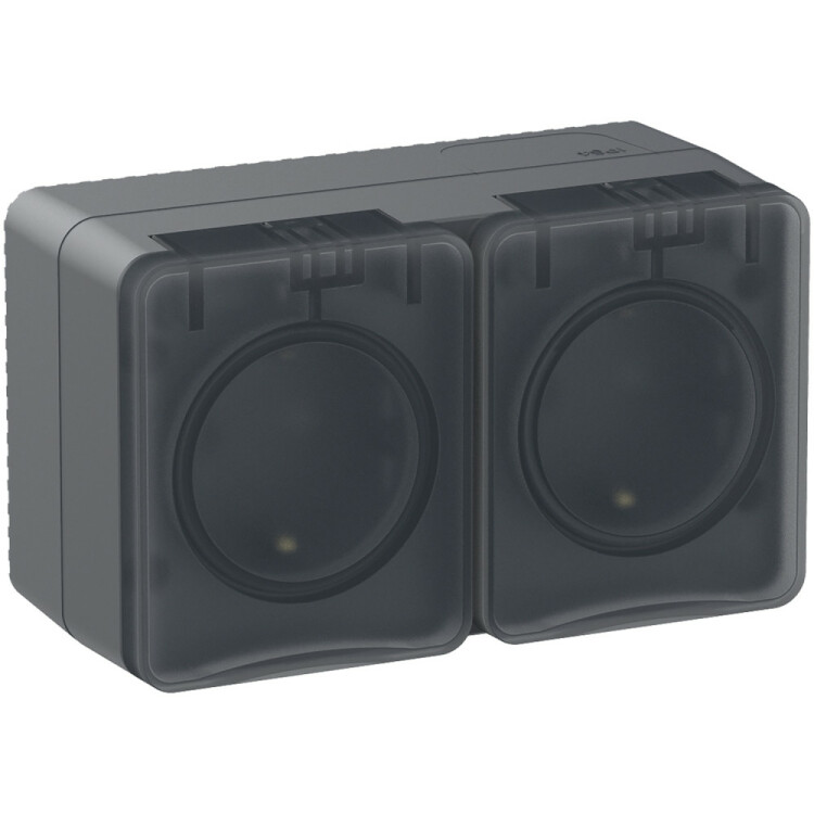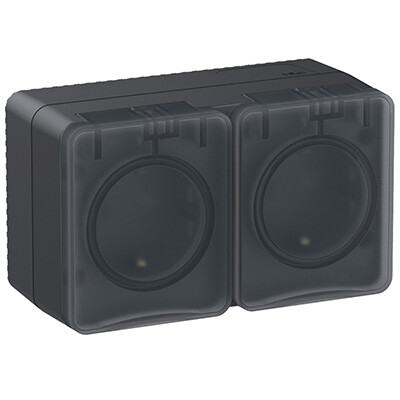 Атлас Профи антрацит розетка открытая 2-мест заземление шторки IP54