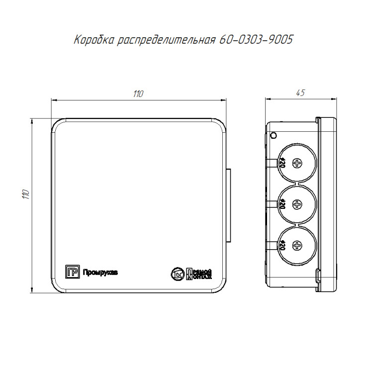 Коробка распределительная безгалогенная "Промрукав" 60-0303-9005 (12 вводов, IP66, УХЛ1), квадрат 100 х 100 х 40 мм, черный