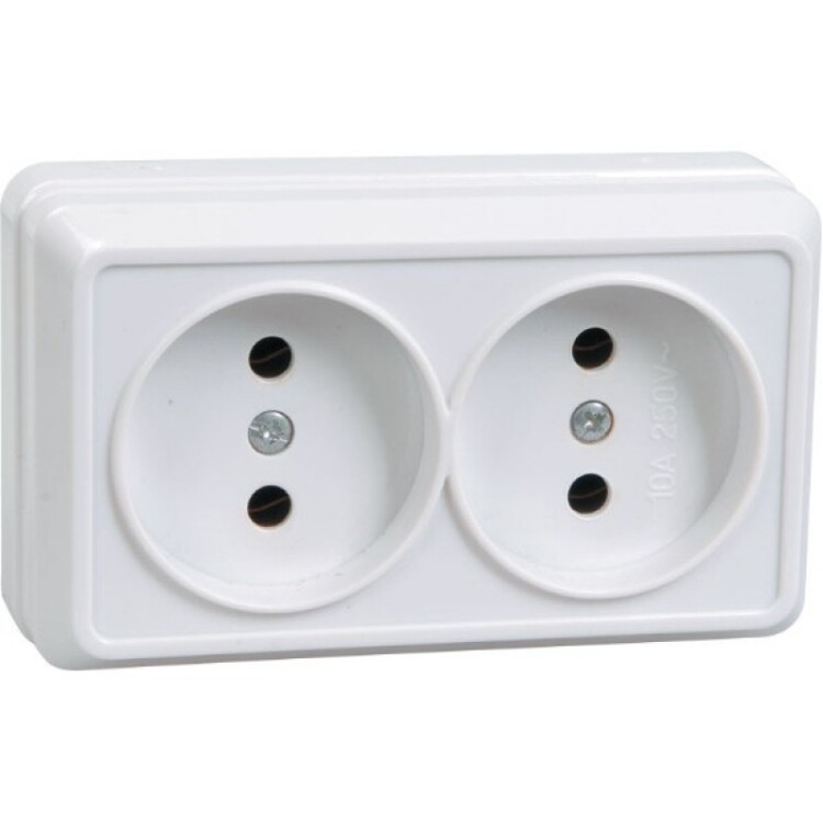 Розетка двухместная "Октава" открытой установки с защитными шторками, белый