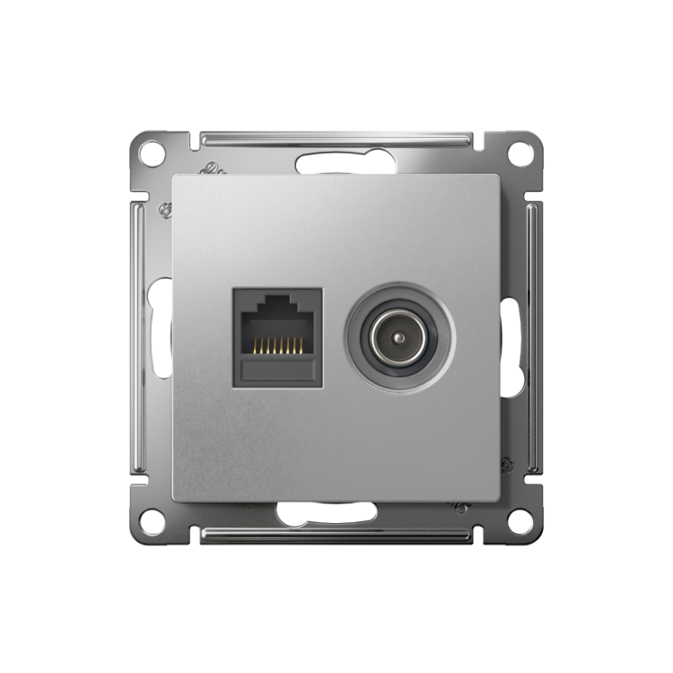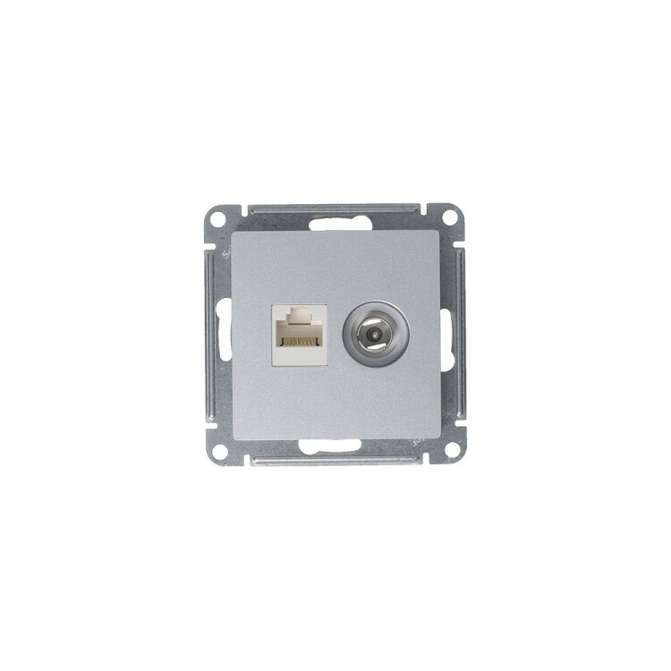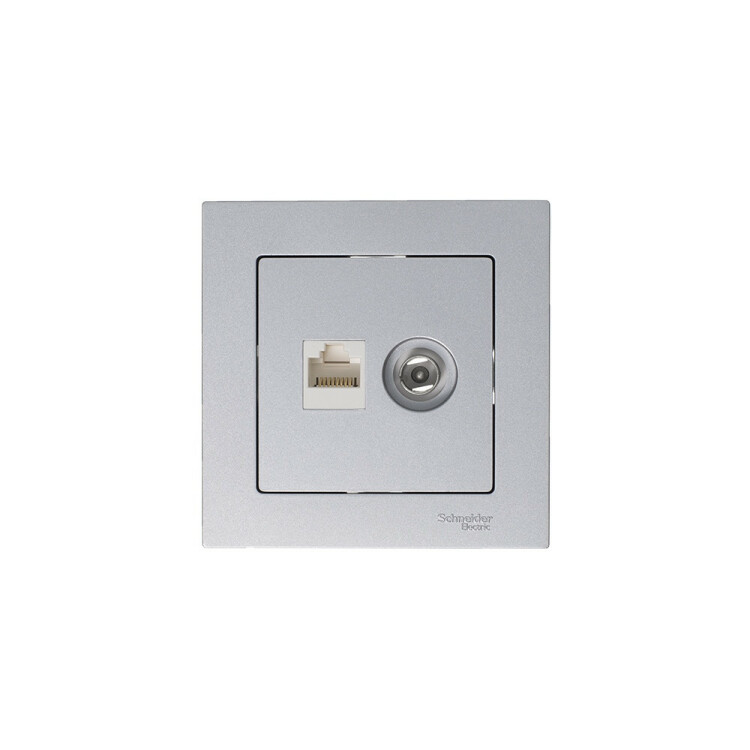 Двойная розетка ТВ + компьютерная RJ45 из коллекции электроустановочных изделий AtlasDesign от Schneider Electric.